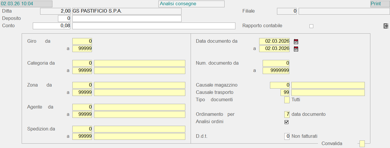 L'attivazione di questo check-box consente di ottenere, contestualmente all'Analisi dei Documenti di Consegna, anche l'Analisi degli Ordini relativi ai Documenti stessi.