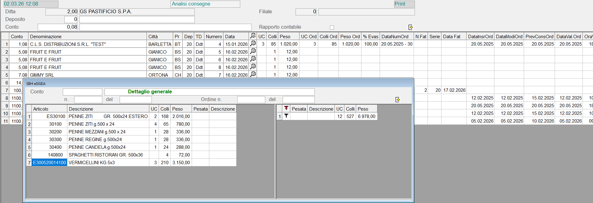 L'Analisi Consegne può essere richiesta a video in modalità data-grid oppure generata in formato xml.