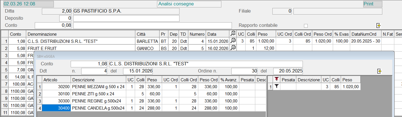posto sull'intestazione del data-grid principale, invece, permette di visualizzare la Situazione generale di tutti gli Articoli consegnati e la Situazione sintetica delle diverse tipologie di pesata.