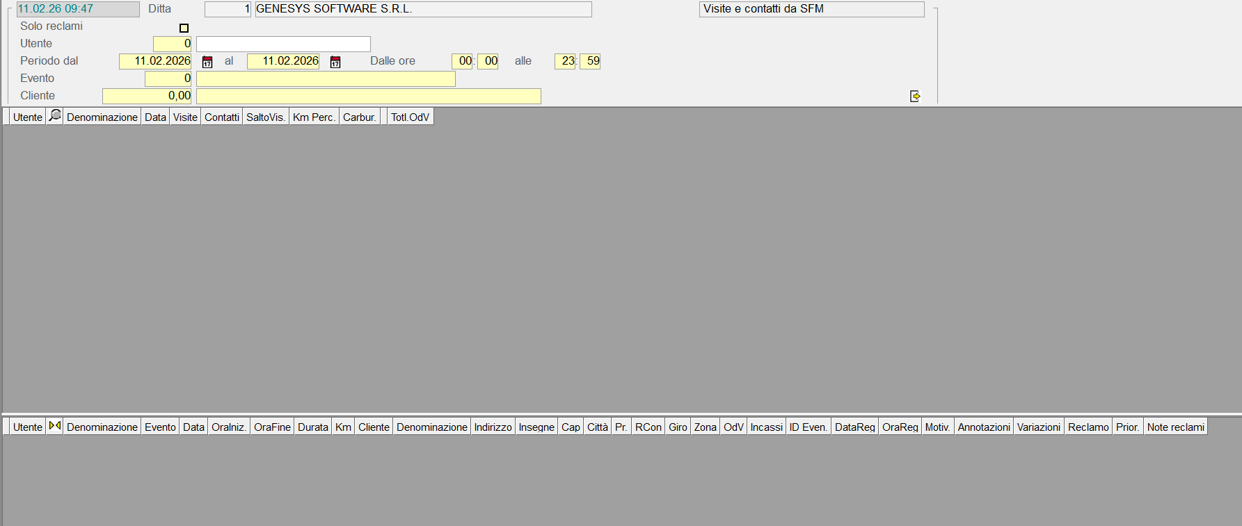 Dalla funzione d'Inquiry Visite e Contatti è possibile interrogare i reclami dei Clienti, registrati dagli Agenti attraverso la funzione Opera del modulo SFM - Sales Force Management.
