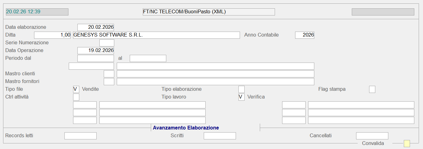 1.16.26.1.12 - Import Fatture/Note Credito Telecom/Buoni Pasto