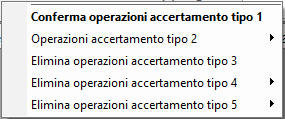 Per gli accertamenti di tipo 1, 3, 4 e 5, la modalità operativa è la stessa: dopo aver effettuato la scelta, il programma visualizza in un data-grid l'elenco delle operazioni candidate all'eliminazione o alla conferma.