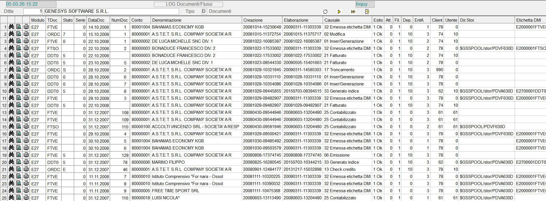 Con la convalida dei parametri impostati, ha inizio l'elaborazione e la successiva visualizzazione dei Documenti/Flussi in modalità data-grid.