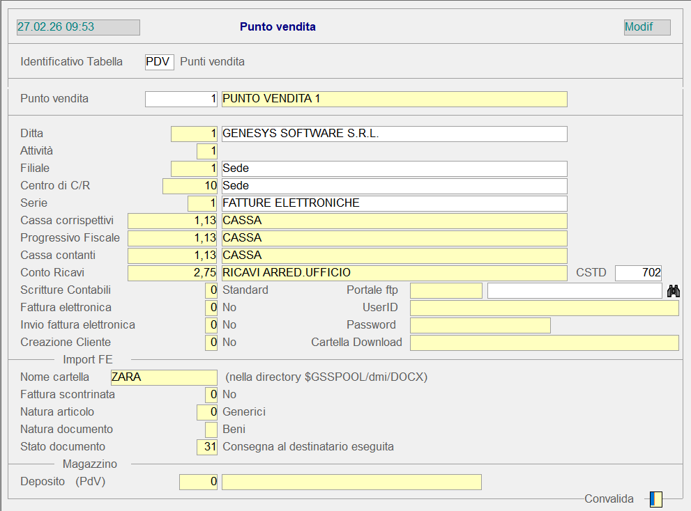 È ora possibile impostare il campo “Stato documento” ai fini dell’Import flussi FE attivo (PDV): esso può assumere i valori “1 - Generato” o “31 - Consegna destinatario eseguita”.