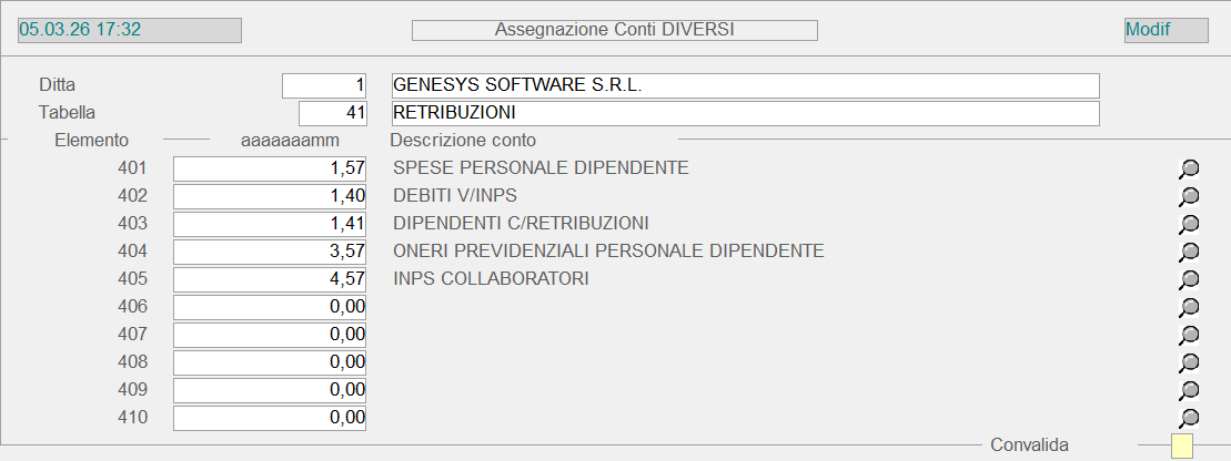 A differenza dei precedenti, dei quali la Genesys Software si riserva l'utilizzo, l'utente può inserire liberamente i Conti Standard Diversi, da collegare alle Causali Contabili, ai Clienti e ai Fornitori. In questo caso, i codici della tabella a disposizione dell'utente vanno da 10 a 999.