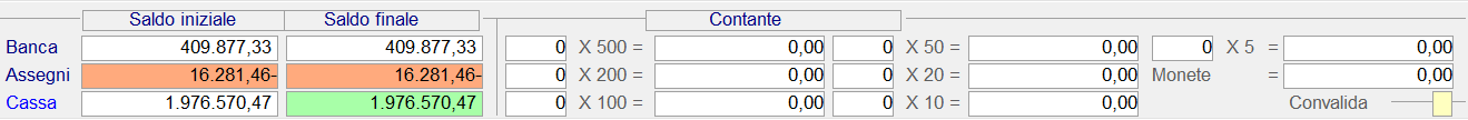 Per quanto concerne i Contanti, invece, sarà registrato un versamento cumulativo del denaro in Banca e l'importo sarà stornato dal conto Cassa.