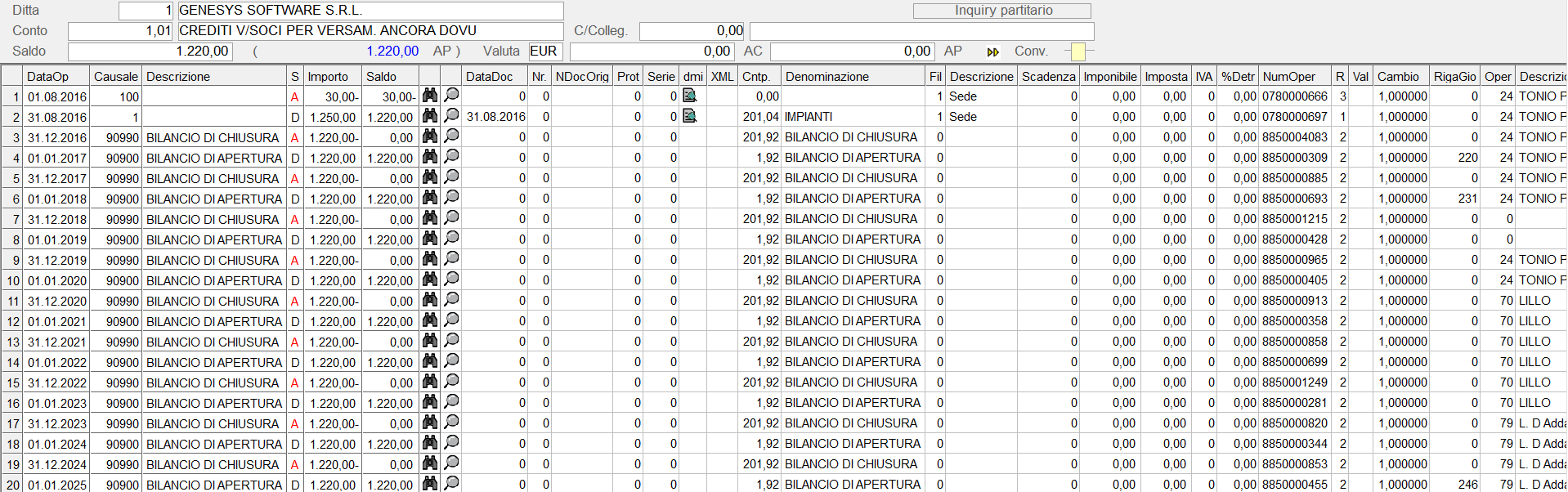 2.20.1 - Inquiry Partitari Contabilità Generale