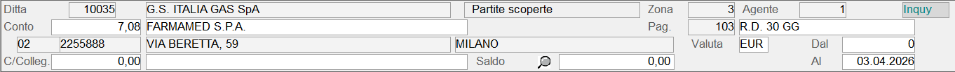 La valorizzazione dei suddetti dati avviene nell'intestazione della videata: