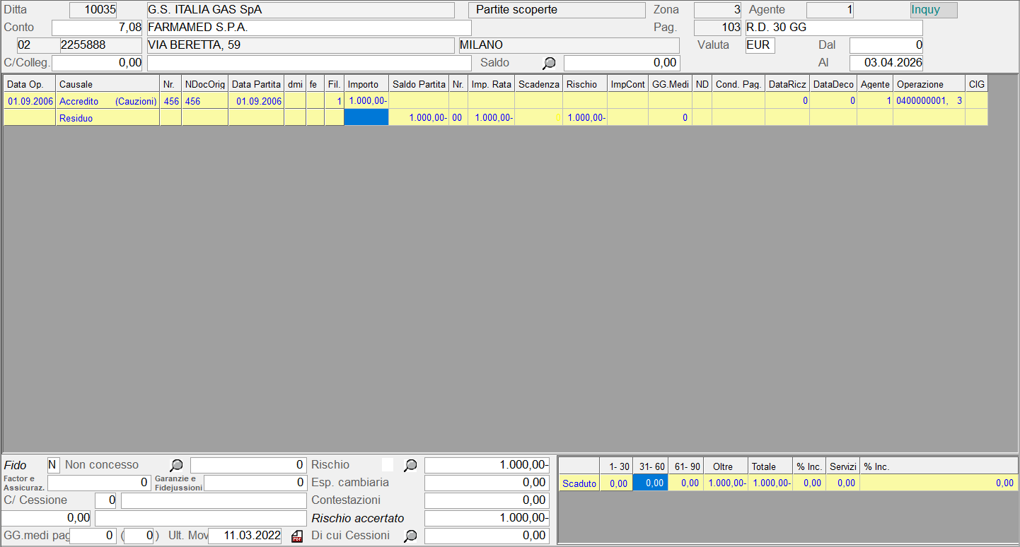 La funzione Inquiry Cauzioni consente di effettuare un'interrogazione per Cliente della situazione cauzioni versate per i vuoi posseduti.