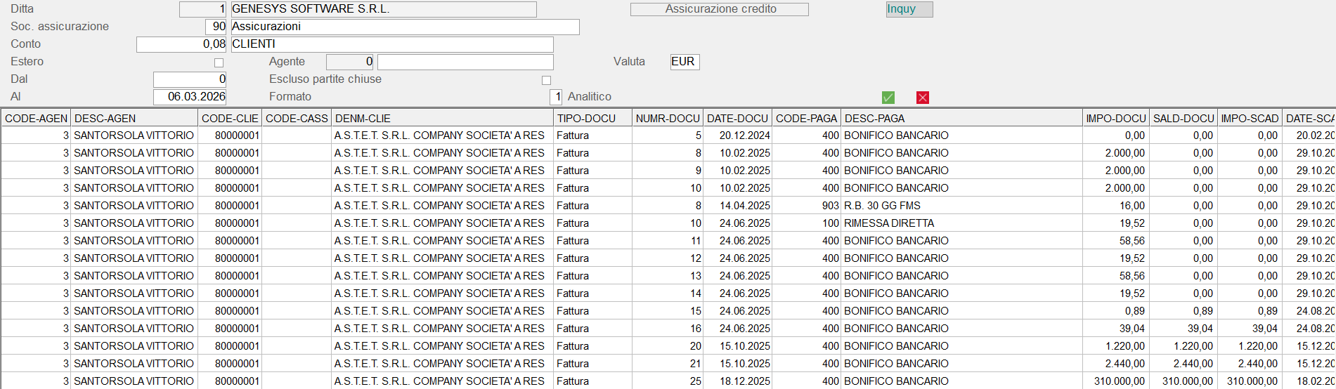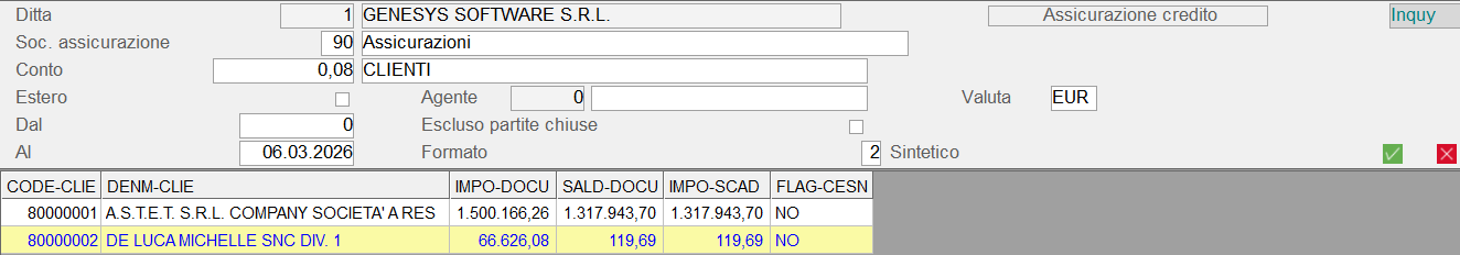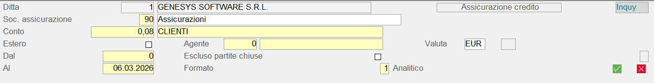 - Potranno esserci al massimo 2 righe per Conto, una con NO Credito assicurativo e una con SÍ Credito assicurativo.