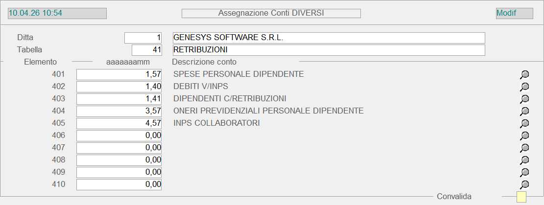 1.1.9.4.3 - Dati di Servizio: 3. Assegnazione Conti Standard Diversi