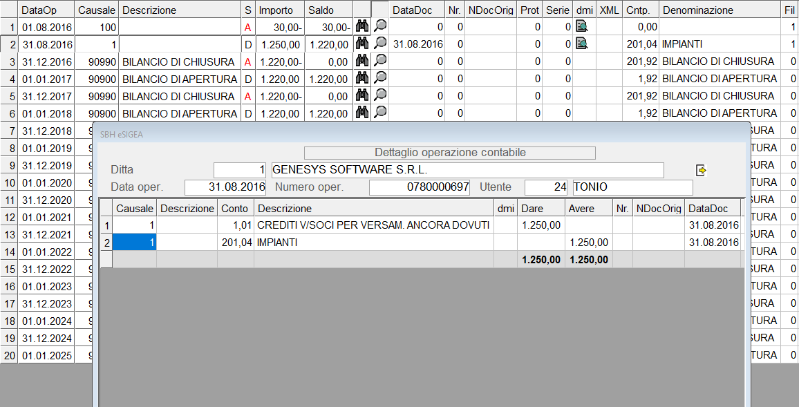 È previsto il controllo sul Bilancio di Apertura: questo controllo consiste nel considerare sempre che il Bilancio di Apertura sia stato generato al 1º Gennaio.In mancanza di questo controllo, se ad esempio il Bilancio di Apertura sia stato generato il 1º Aprile e il periodo richiesto sia fino al 31 Marzo, il Bilancio di Apertura Non sarebbe considerato.