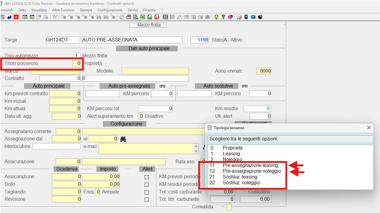 Percorso funzione E25\1.8 Gestione economica fornitore\8 Contratti servizi\6 Contratti di noleggio/leasing\13 Inquiry/Alert mezzi flotta