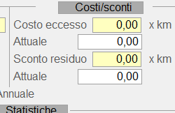 Nella funzione di inserimento/modifica dell'anagrafica saranno previsti due campi nuovi con cui configurare il costo dei km in esubero e lo sconto per i km in meno, rispetto al contratto.