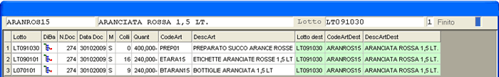 Si noti che le prime due colonne sono state fissate, per consentire lo scroll verso destra senza perdere i riferimenti dei Lotti di Produzione e di Destinazione.