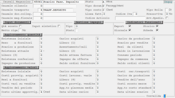 Causale 45.061 - Scarico Passaggio deposito