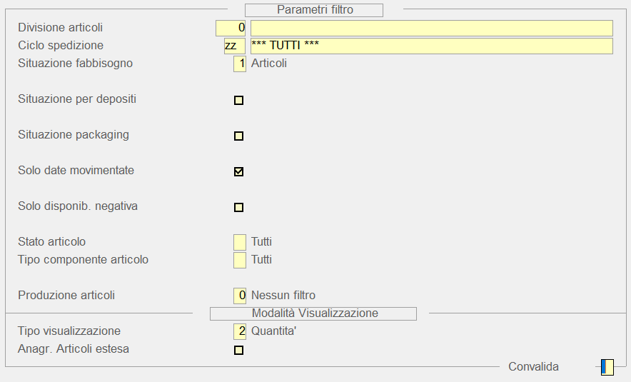 È possibile specificare il codice della Divisione, rispetto alla quale analizzare il Fabbisogno degli Articoli.