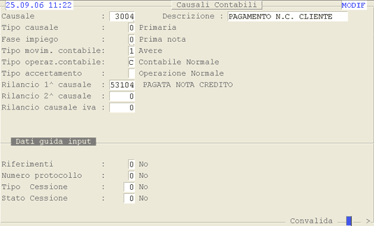Causale 3004: 1° videata.
