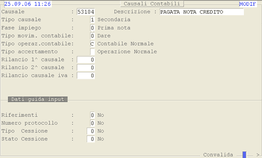 Causale 53104: 1° videata.