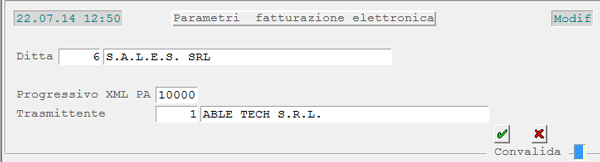 In questa tabella devono essere inseriti i parametri utili, per la gestione di alcuni campi della Fattura Elettronica PA.