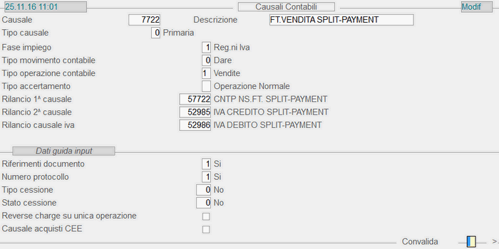Causale 7.722 - Fattura Vendita Split-Payment