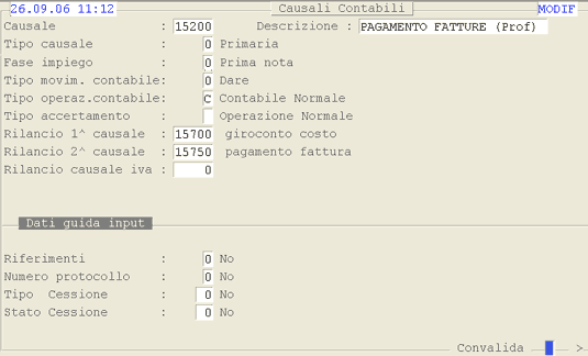 Causale 15200: 1° videata.