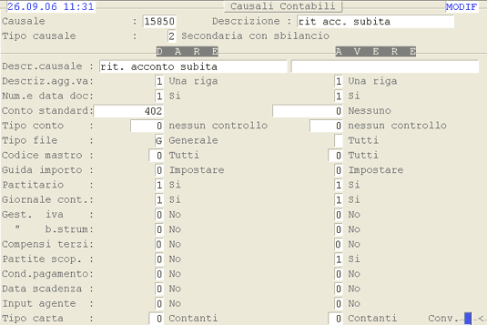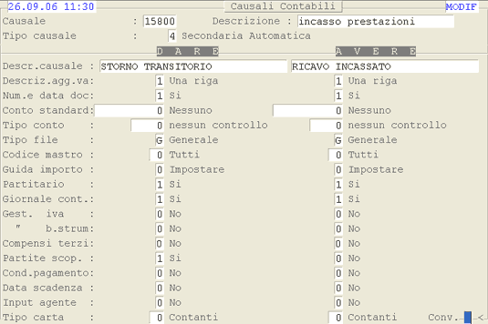 Causale 15800: 1° videata.