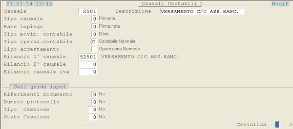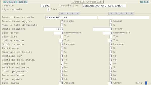 Causale 2.501 - Versamento C/C Assegno Bancario