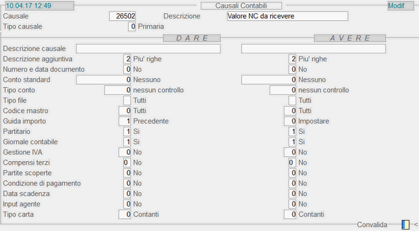 Causale 26.502 - Valor...