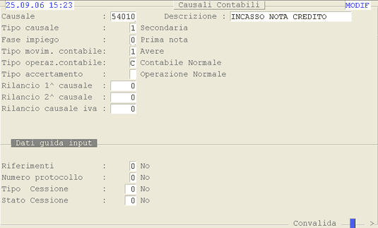 Causale 54010: 1° videata.