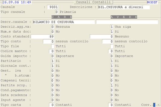 Causale 9001 - Bilancio Chiusura a Diversi