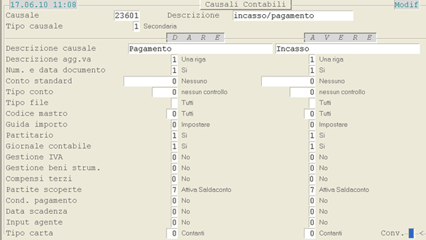 Causale 23601 - Incasso/Pagamento