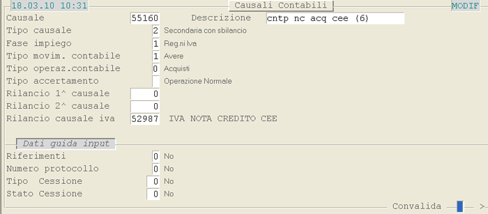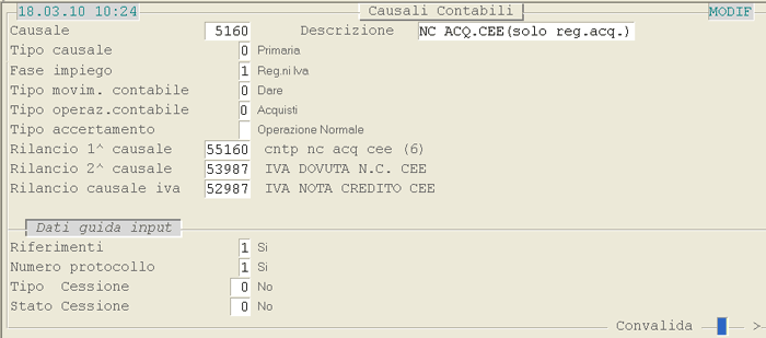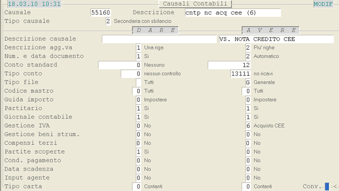 Causale 55160: 1° videata
