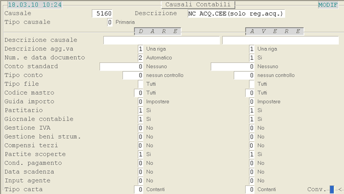Causale 5160: 1° videata