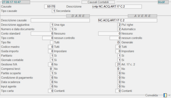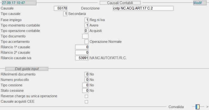 Causale 5.170 - Nota Credito Acquisti art.17 c.2 Importazioni (solo Registro Acquisti)