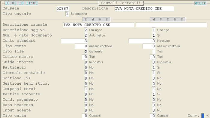 Causale 7160 - Nota Credito CEE (solo Registro Vendite)