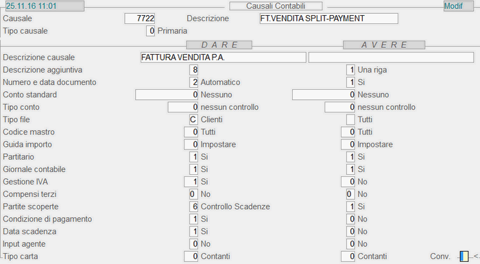 Causale 7.722 - Fattura Vendita Split-Payment