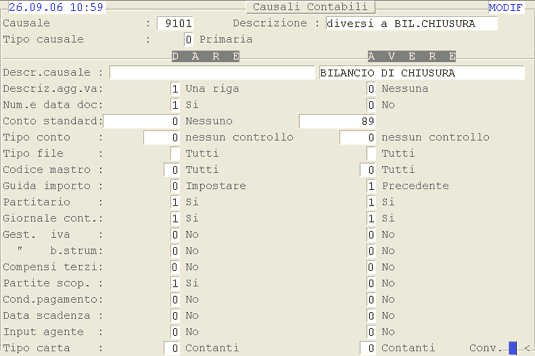 Causale 9101 - Diversi a Bilancio Chiusura