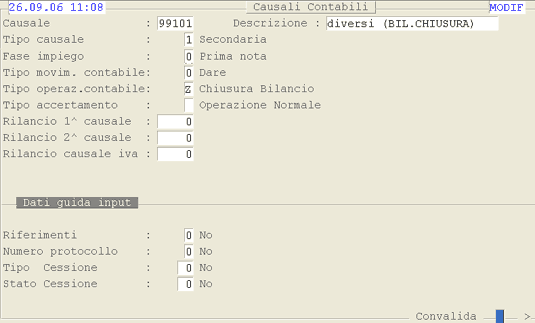 Causale 99101: 1° videata.