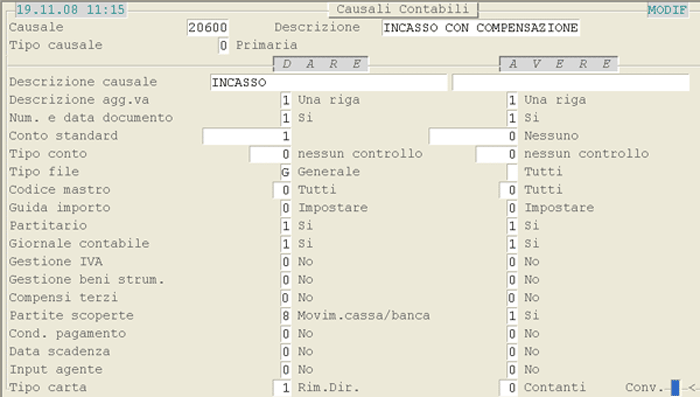 Causale 20030 - Incasso con Compensazione