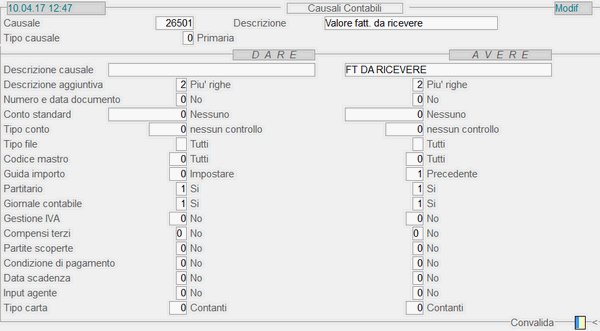 Causale 26.501 - Valor...