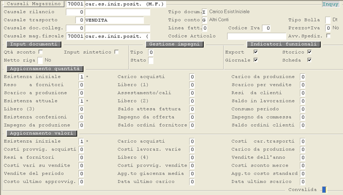 Causale 70.002 - Carico Esistenze Iniziali Ne...