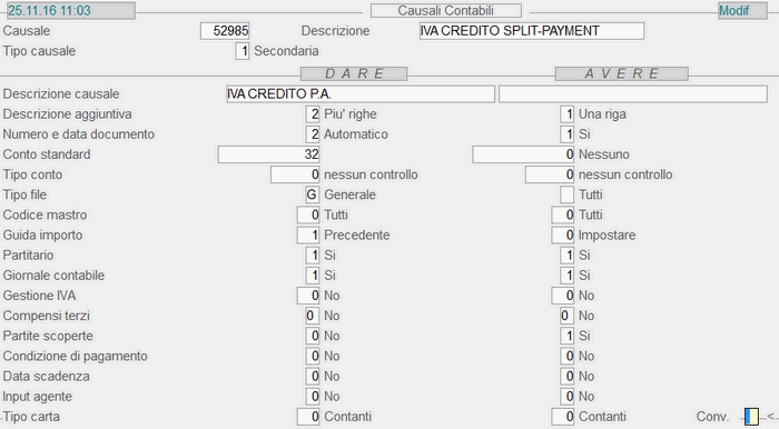 Causale 52.985: 1° videata