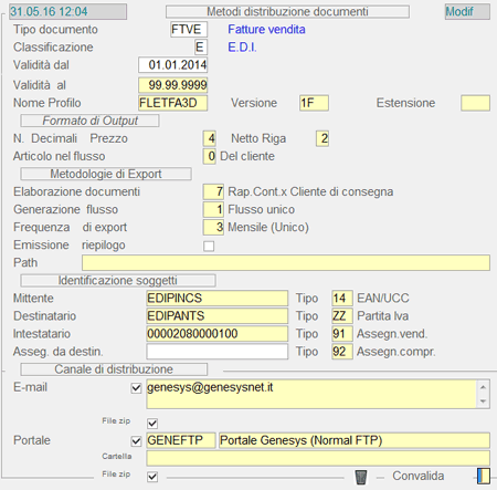 Nel caso di generazione di un flusso EDI, il Metodo di distribuzione deve essere definito nel seguente modo: