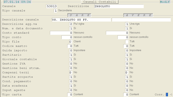 Causale 3013 - Insoluti da Clienti