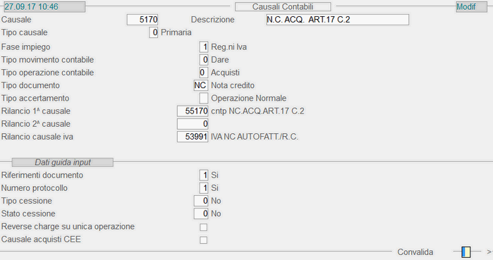 Causale 5.170 - Nota Credito Acquisti art.17 c.2 Importazioni (solo Registro Acquisti)