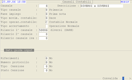 Causale 50006: 1° videata.