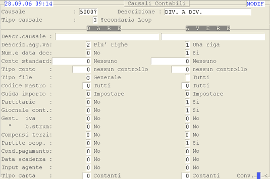 Causale 50007: 1° videata.