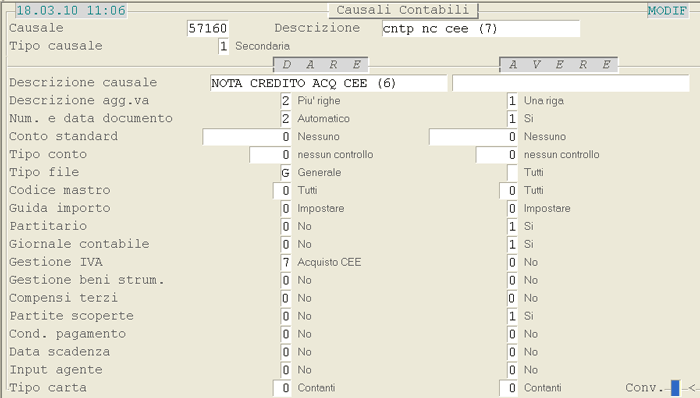 Causale 57160: 1° videata