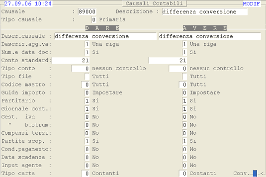 Causale 89000 - Differenza Conversione (Automatica)